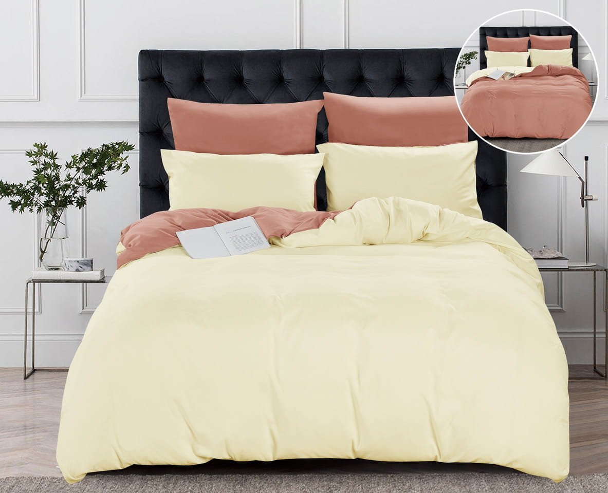 Dwukolorowa pościel 160x200 gładka krem/rudy