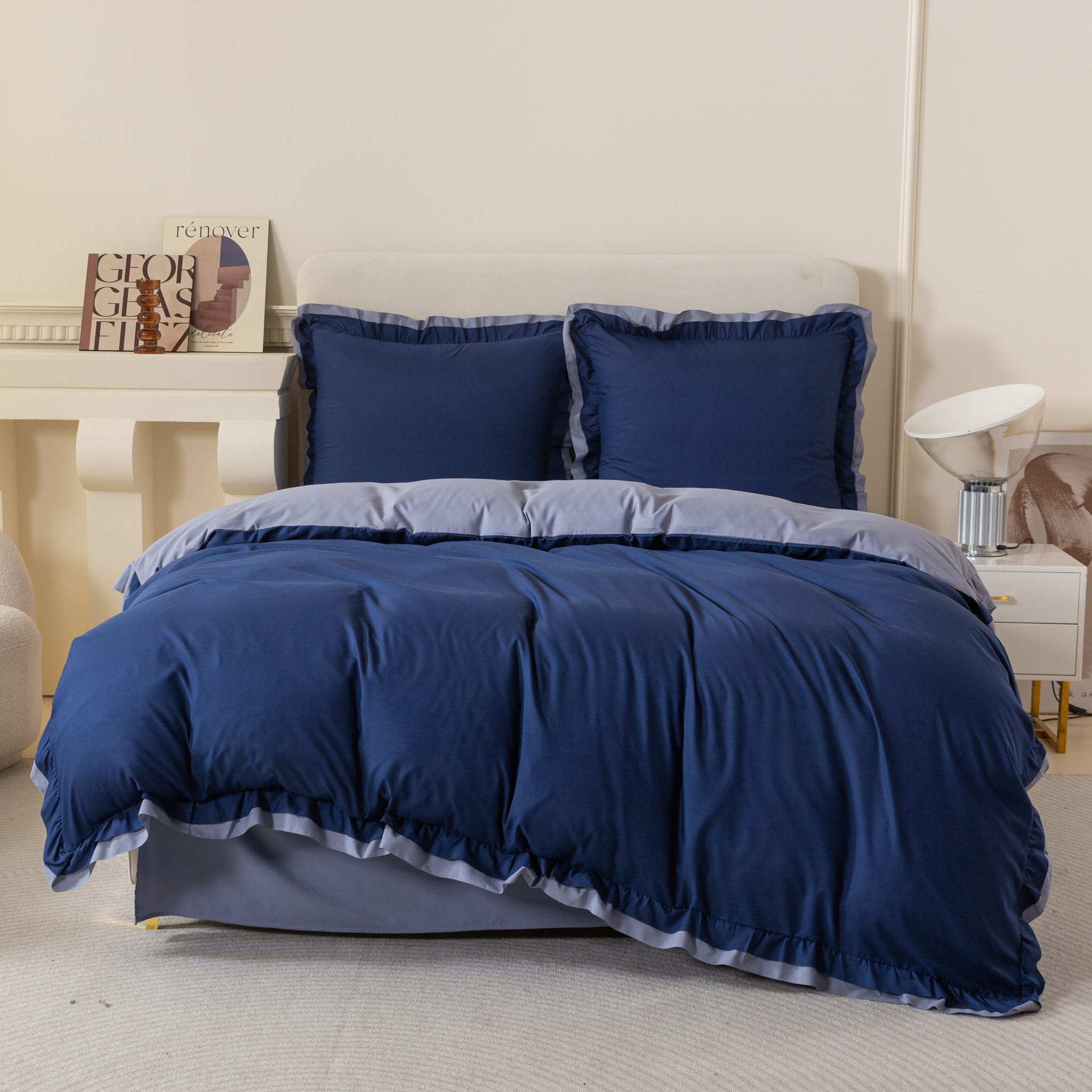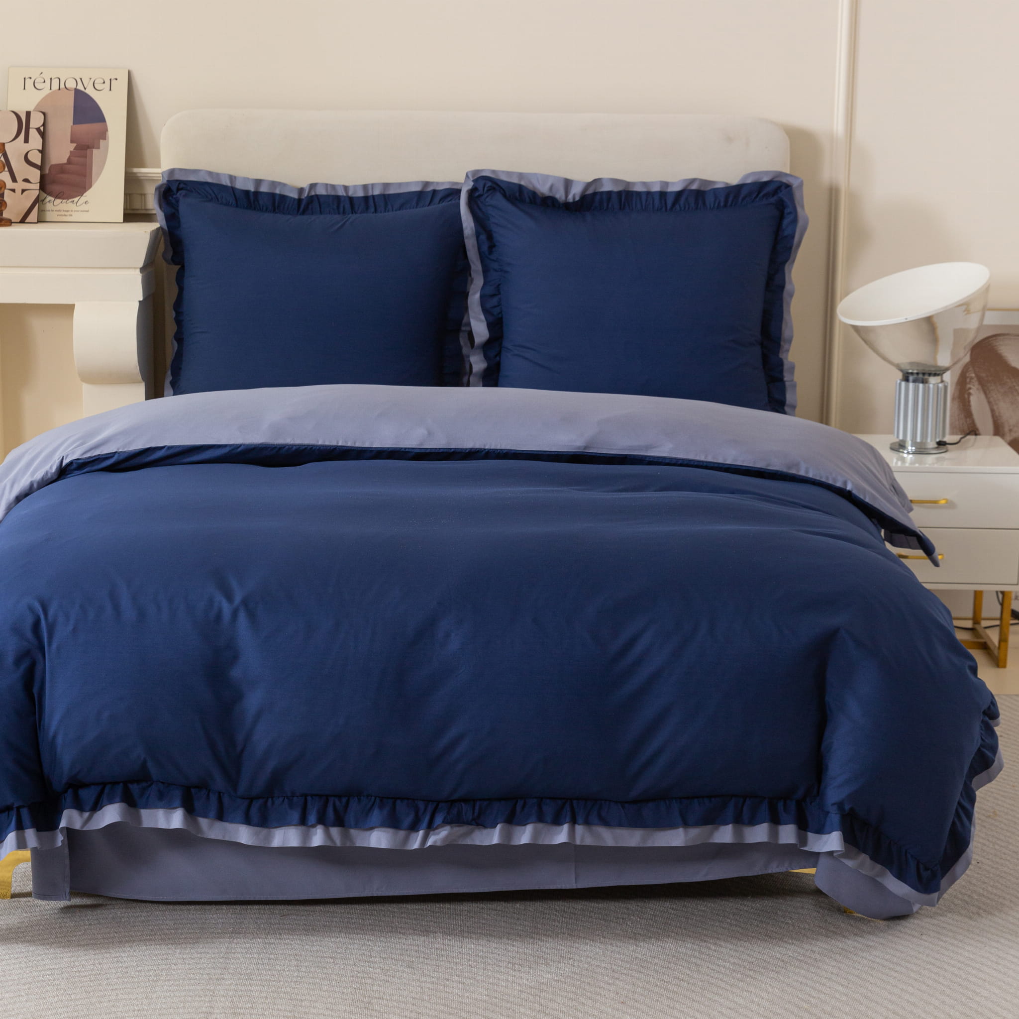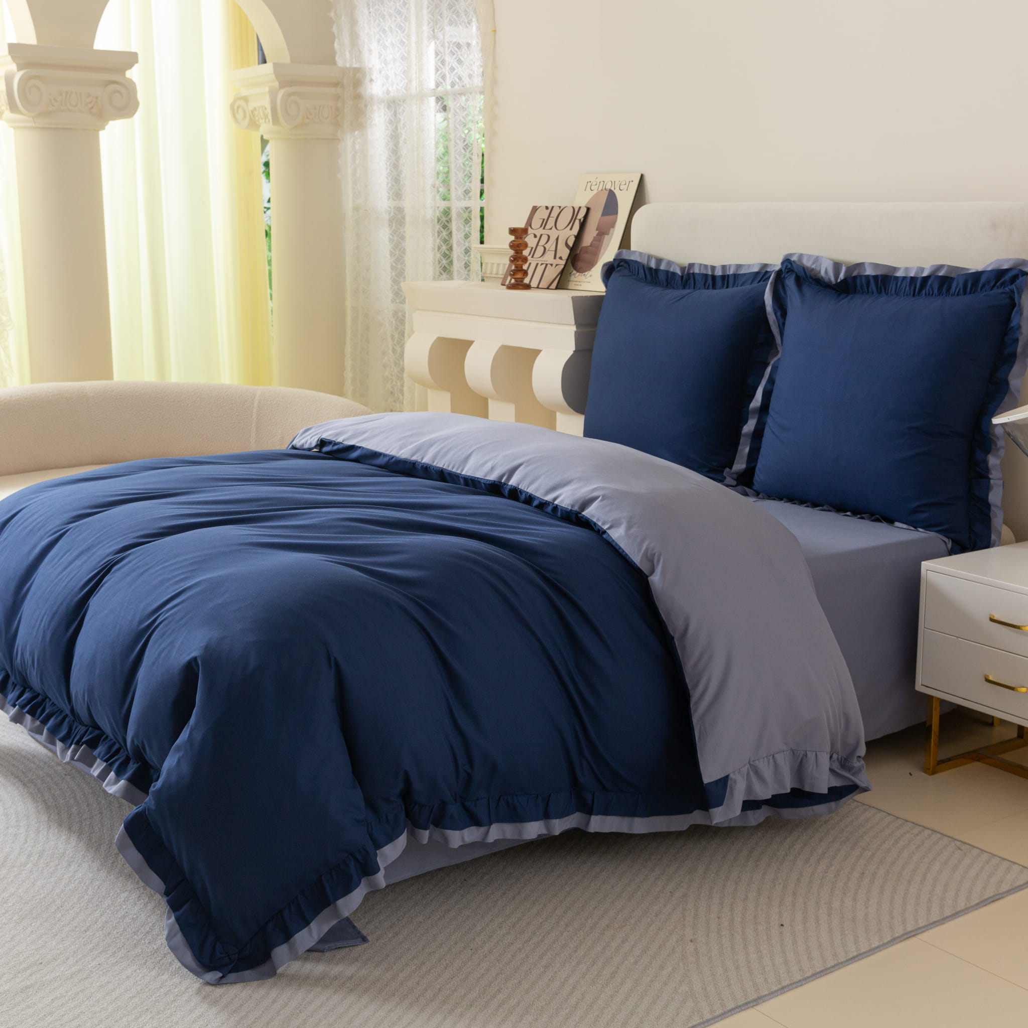 Dwukolorowa pościel z falbanką 160x200 granat/szary