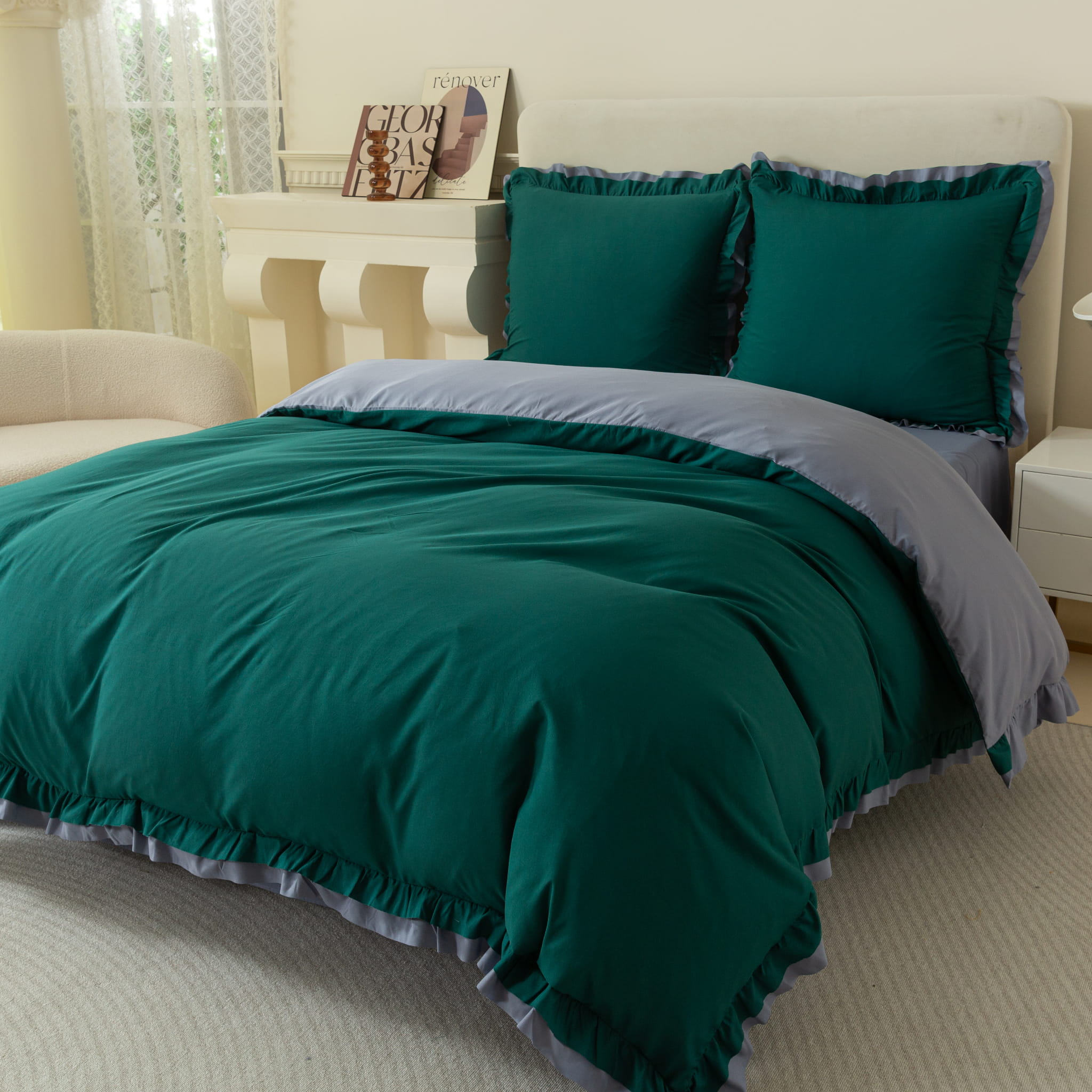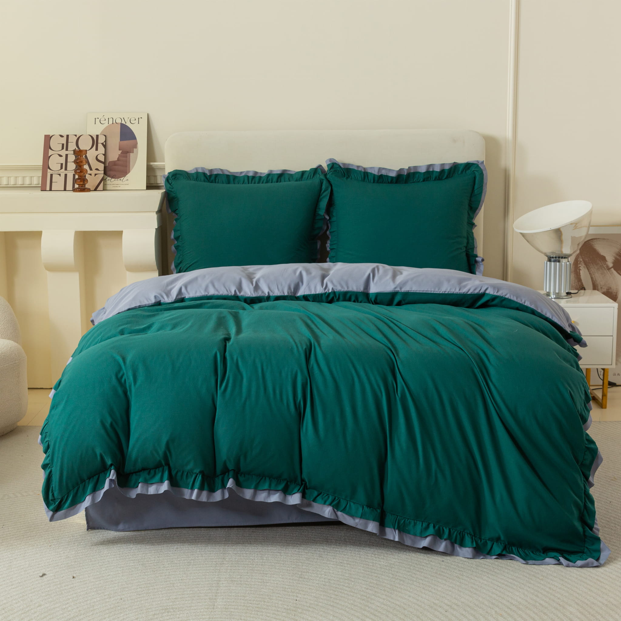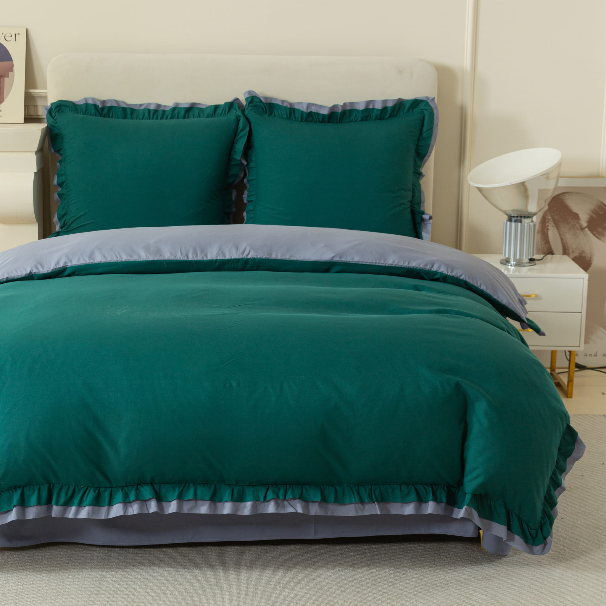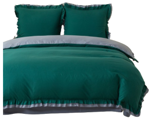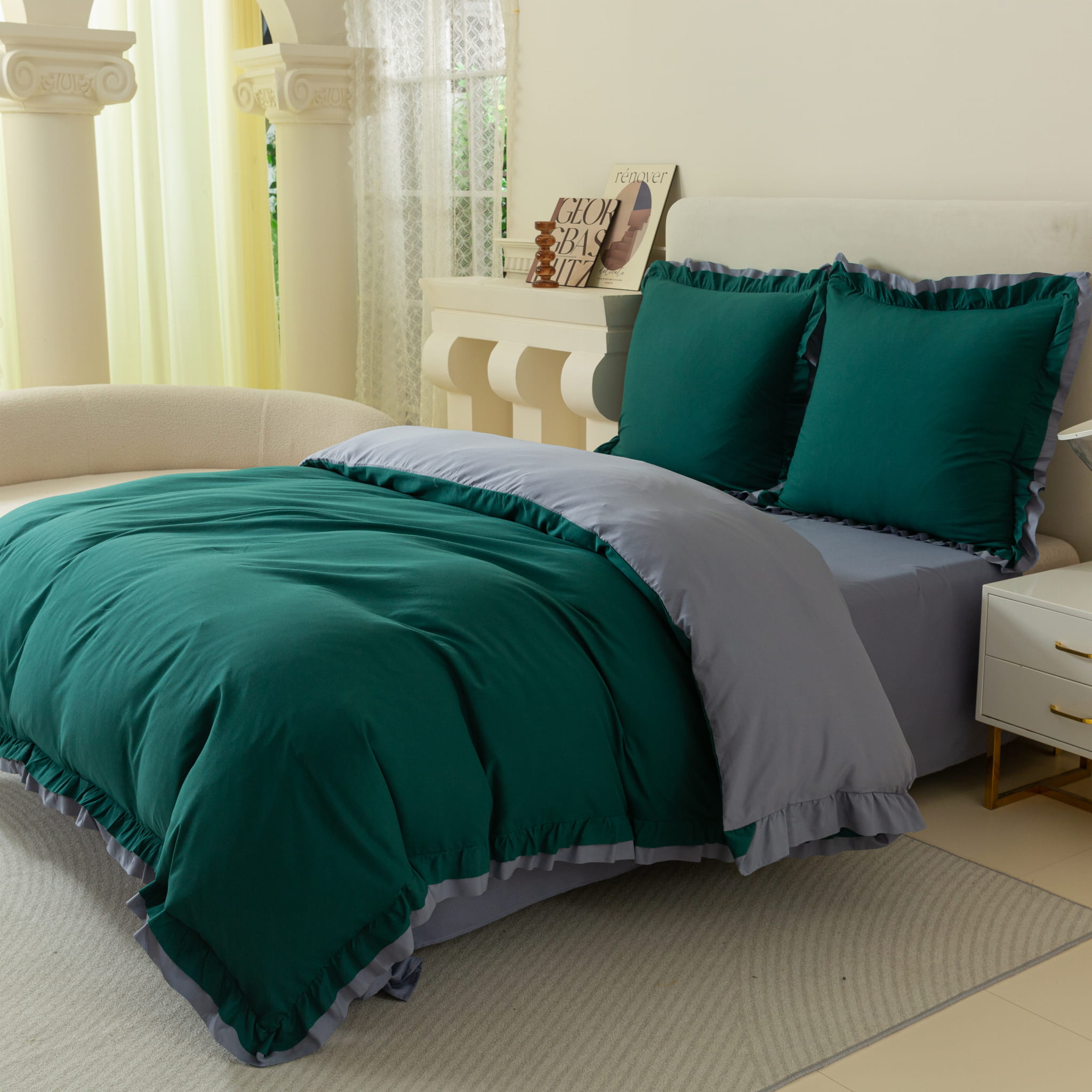 Dwukolorowa pościel z falbanką 160x200 zielony/szary