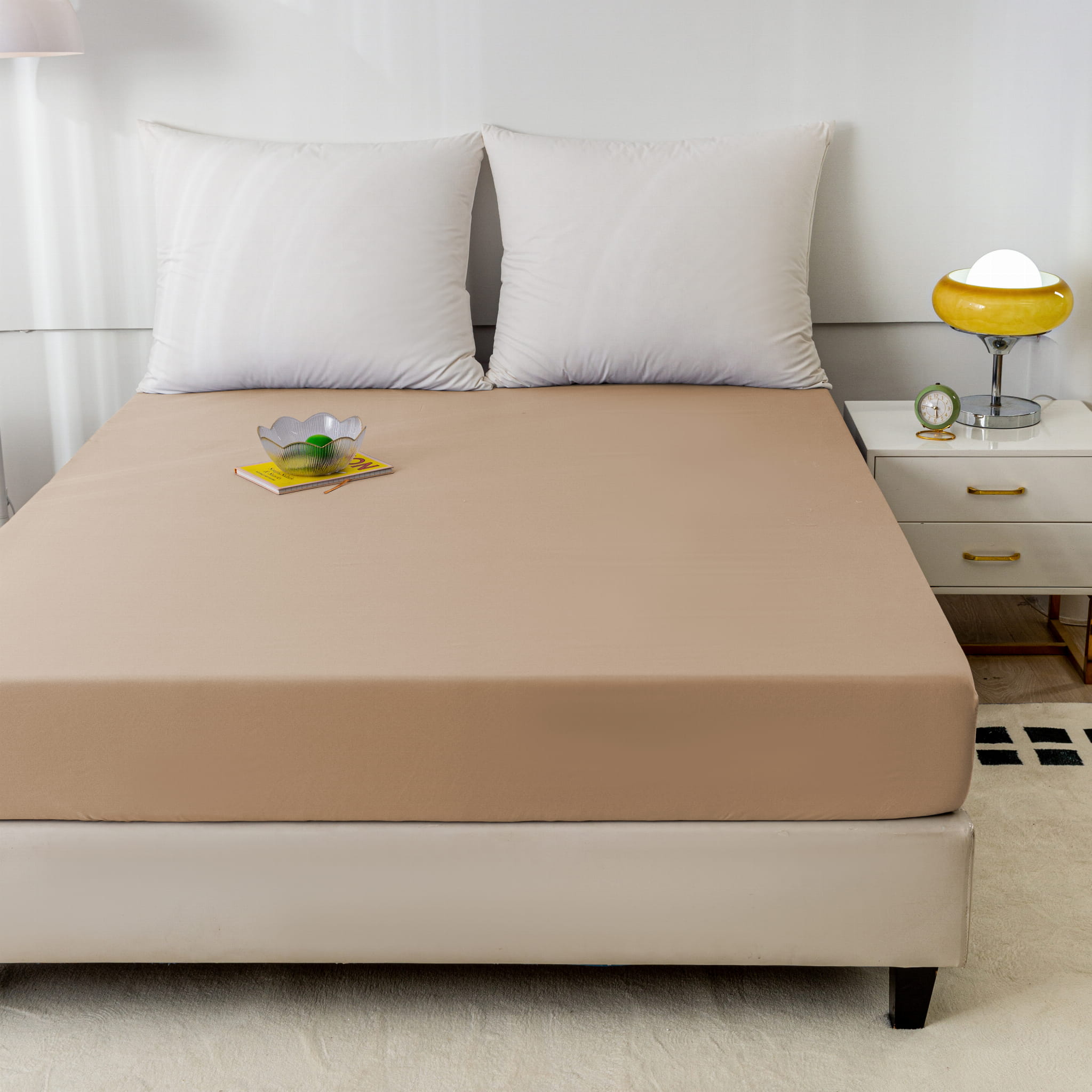 Gładkie prześcieradło z gumką 160x200 beżowe