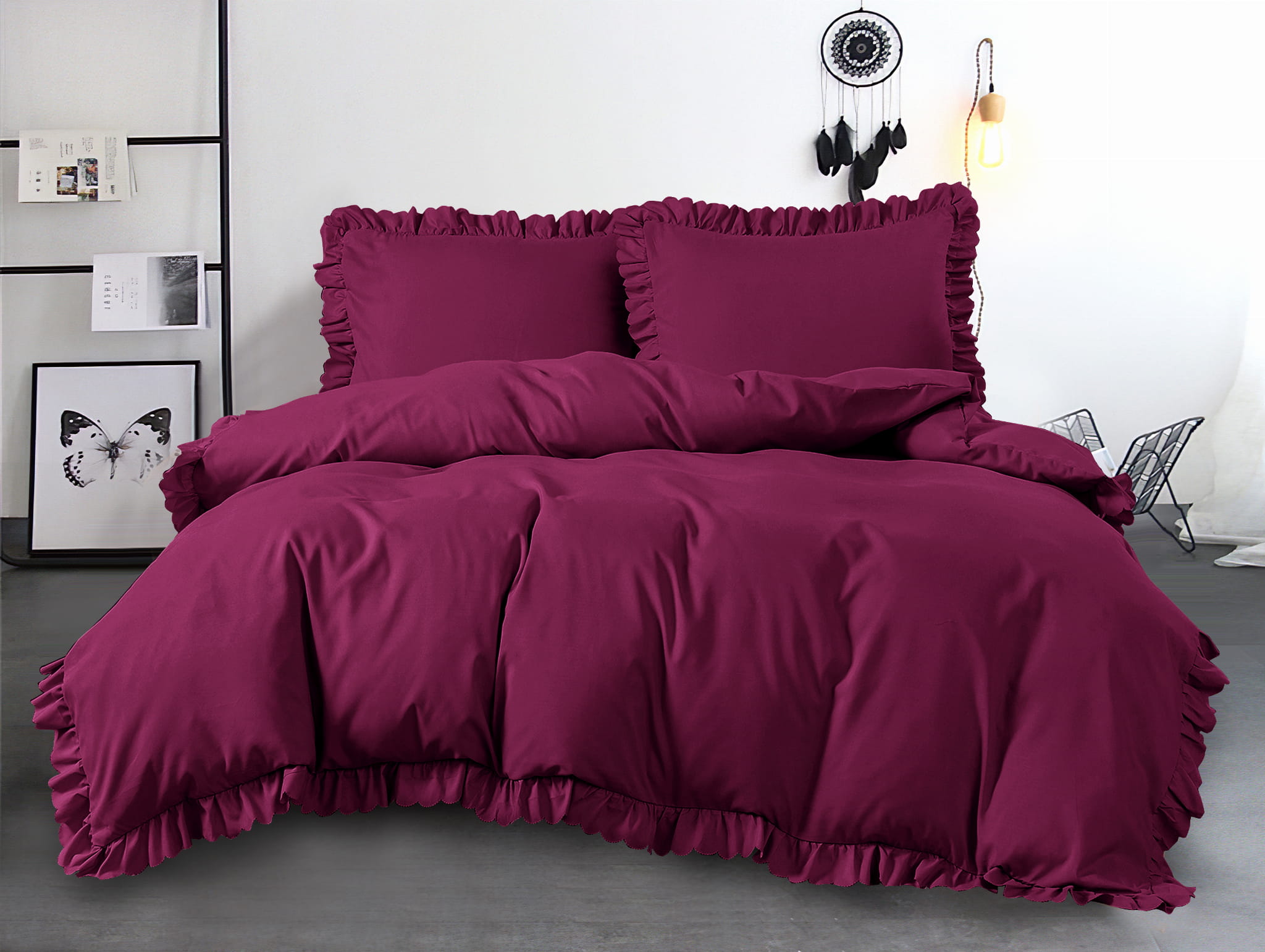 Jednokolorowa pościel z falbanką 140x200 bordowa