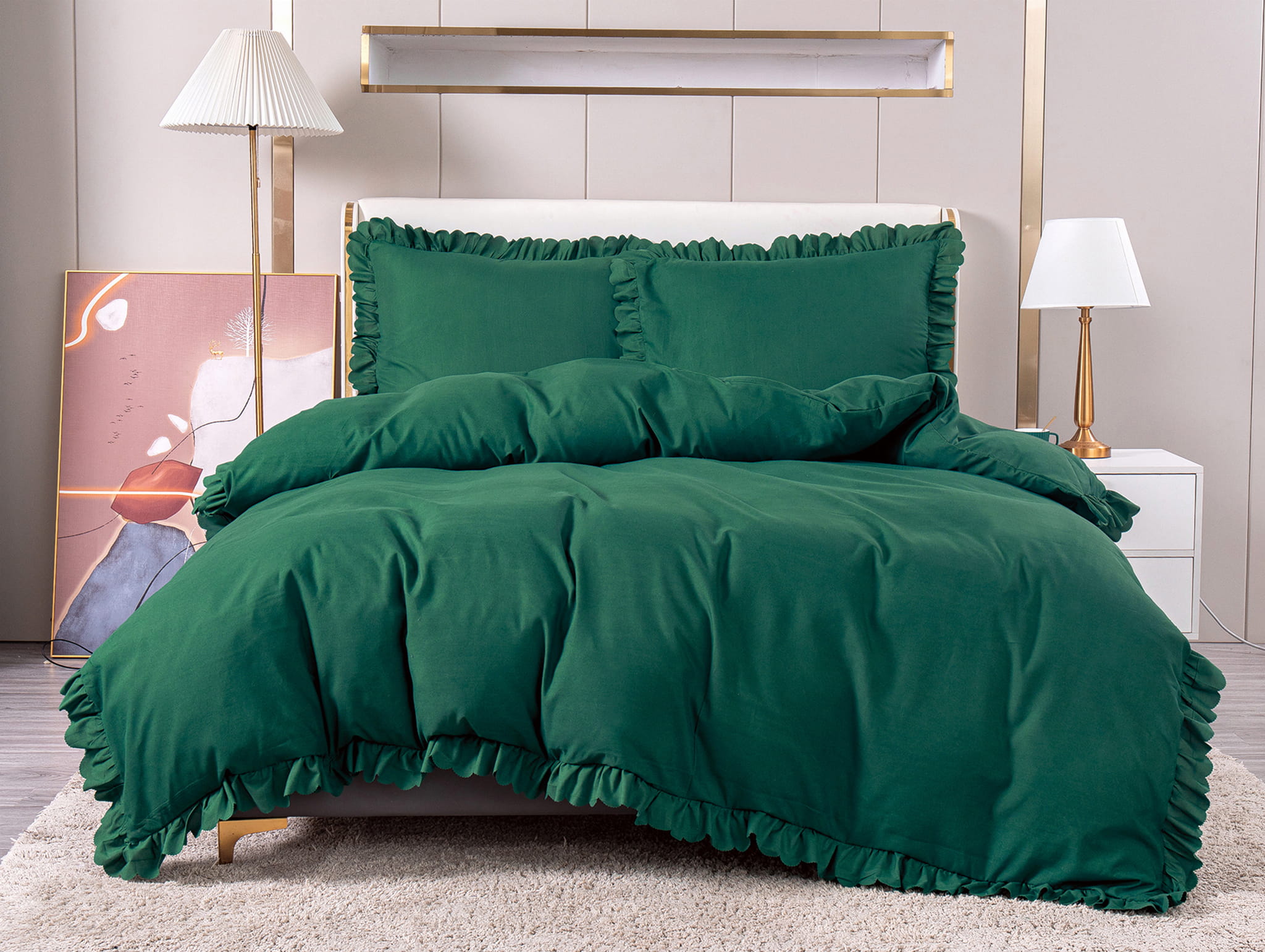 Jednokolorowa pościel z falbanką 140x200 zielona