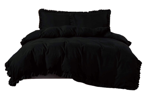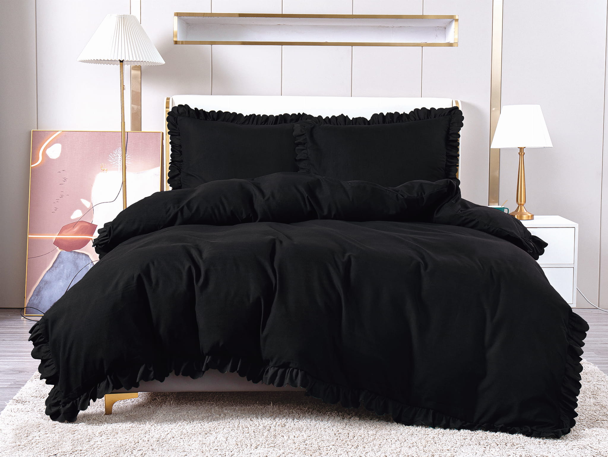 Jednokolorowa pościel z falbanką 160x200 czarna