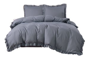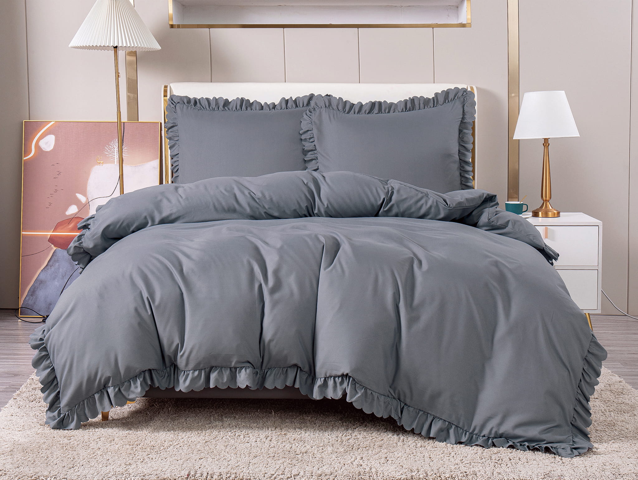 Jednokolorowa pościel z falbanką 160x200 grafitowa