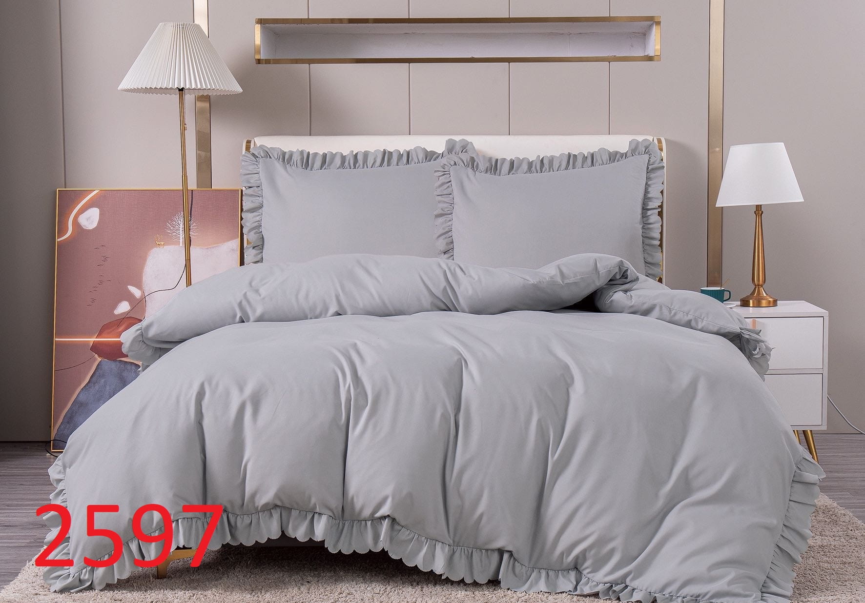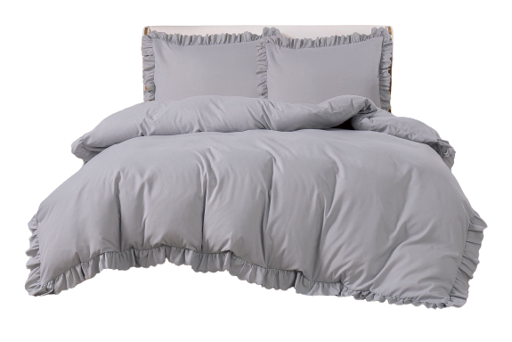 Jednokolorowa pościel z falbanką 200x220 jasno szara