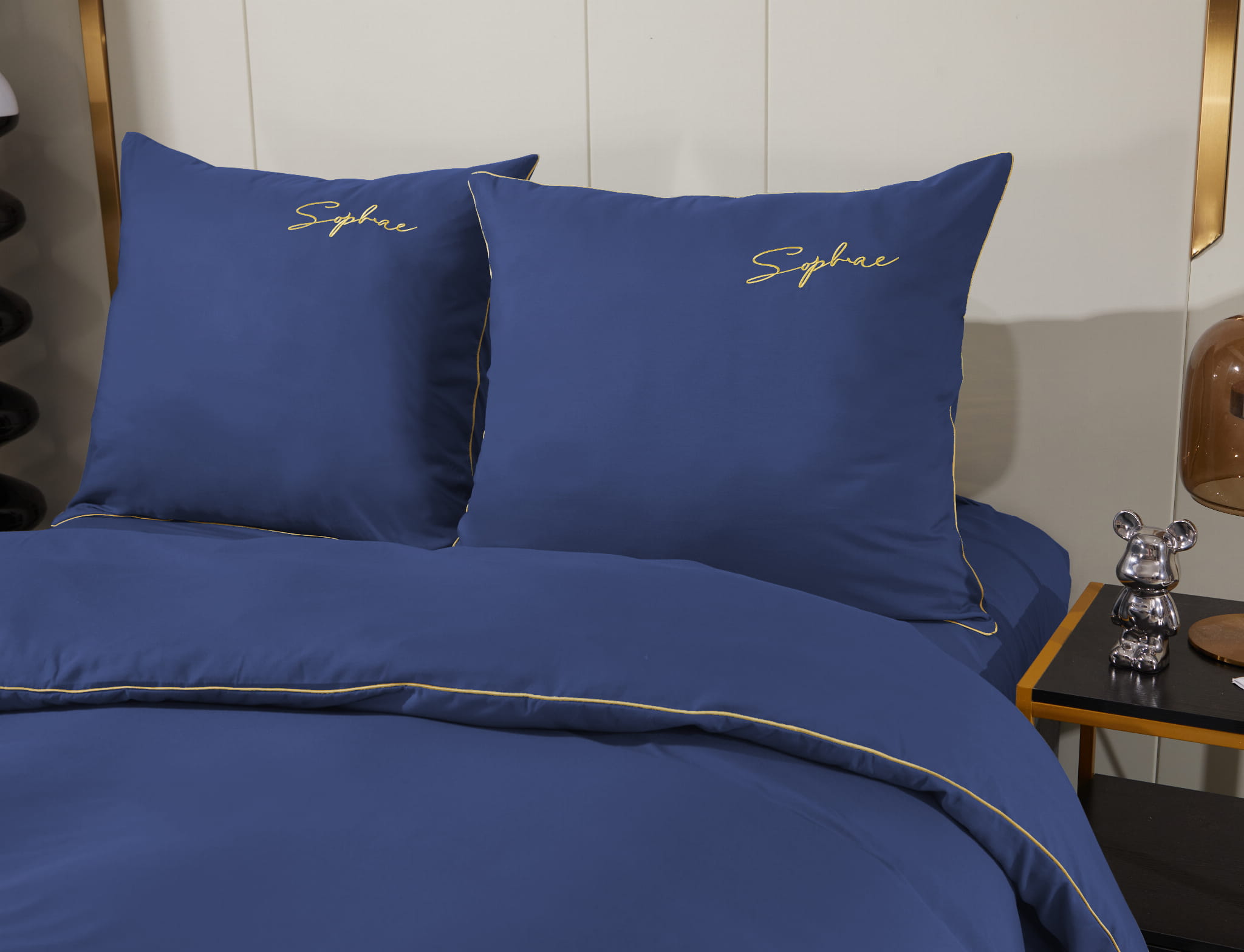Pościel z lamówką 200x220 granatowa