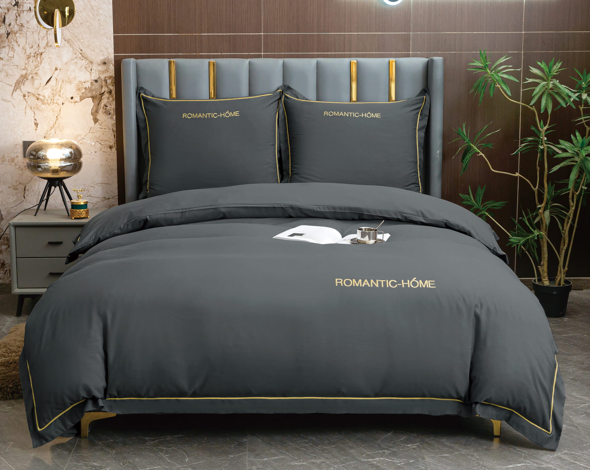 Pościel z lamówką i falbanką 200x220 grafitowa