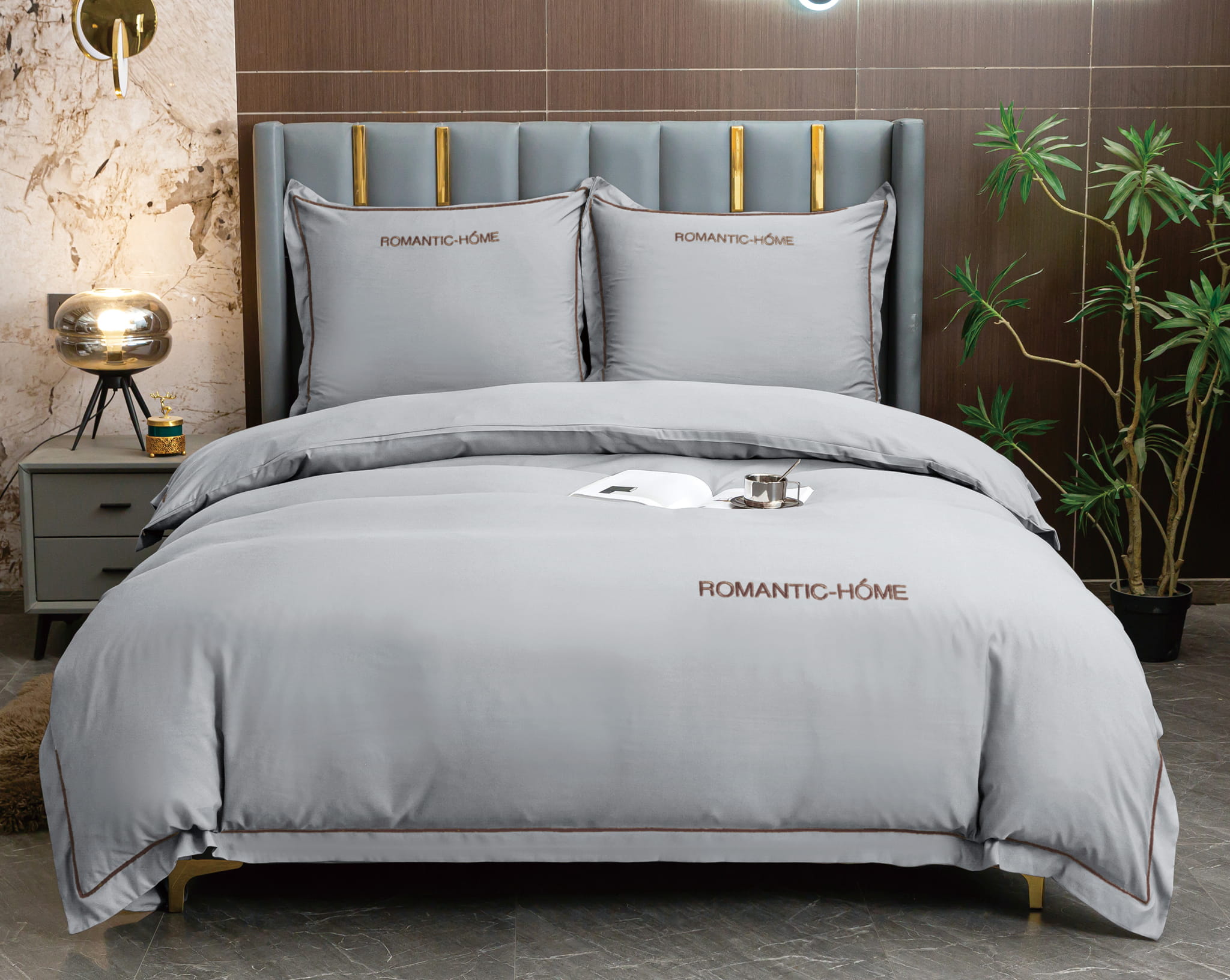 Pościel z lamówką i falbanką 200x220 stalowa